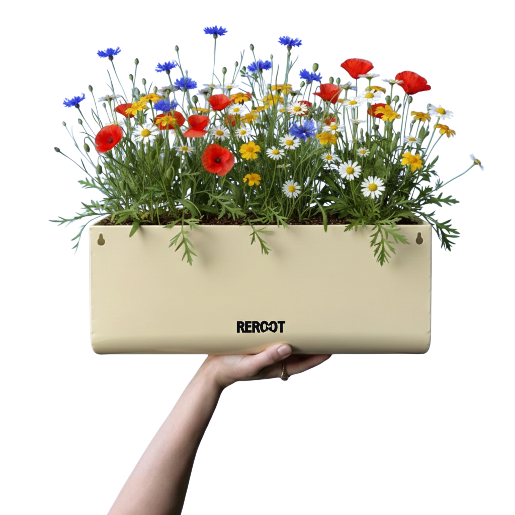 Bring life, colour and pollinators to your patio, wall, doorsteps or garden with the ReRoot Complete Planting Kit. Everything you need to grow a mini nature reserve in one beautifully designed planter.